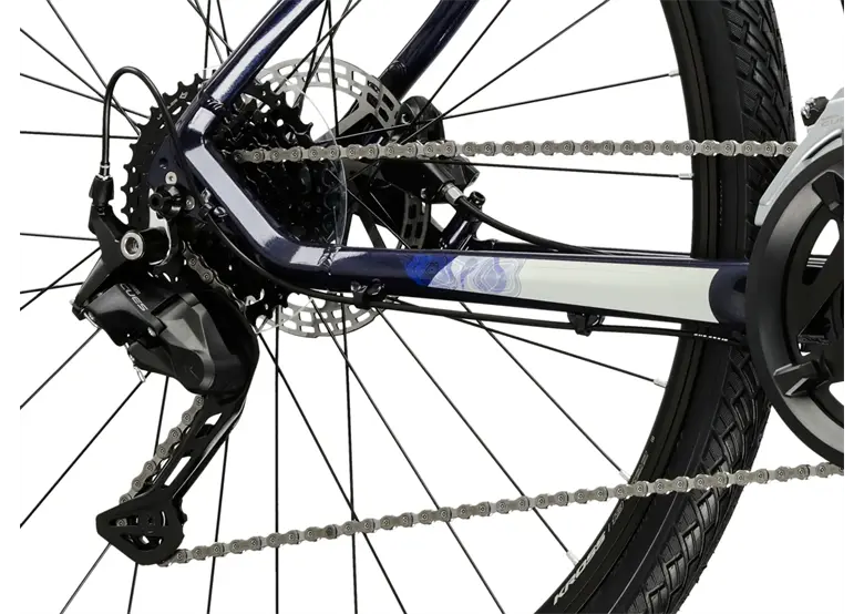 Model sprawdzi się zarówno w mieście, jak i na drogach szutrowych czy leśnych ścieżkach. Napęd 2×9 oferuje szeroki zakres przełożeń, umożliwiając komfortowe podjazdy i dynamiczną jazdę po płaskim terenie. Dzięki aluminiowej ramie i lakierowi proszkowemu rower jest lekki, wytrzymały i odporny na drobne uszkodzenia.