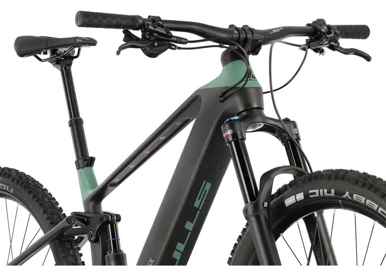 Z przodu zastosowano powietrzny widelec Bulls Lytro 34 SL LOR Air DS Boost o skoku 140 mm, natomiast z tyłu pracuje damper SR Suntour Edge Plus 2CR oferujący 130 mm skoku.