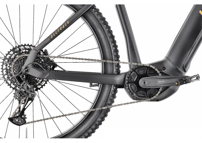 Napęd: SRAM SX Eagle 1×12, kaseta 11–50T, zębatka 36T – szeroki zakres przełożeń wspiera silnik na stromych podjazdach i komfortowe tempo na płaskim.