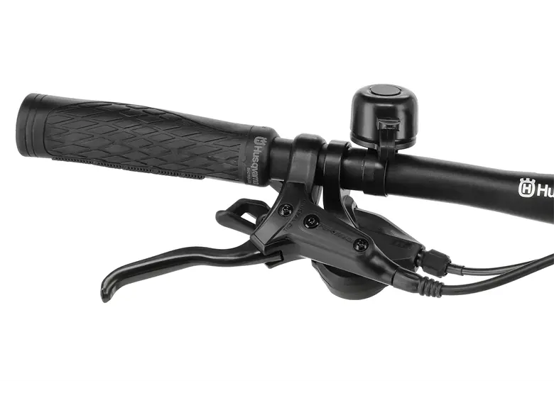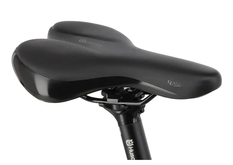 Ergonomiczna kierownica i wygodne siodło Husqvarna — komfort na długich trasach.
