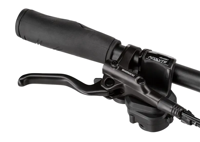 • Hydrauliczne hamulce tarczowe Shimano BR-MT200 – tarcze 160 mm gwarantują skuteczne hamowanie w każdych warunkach,