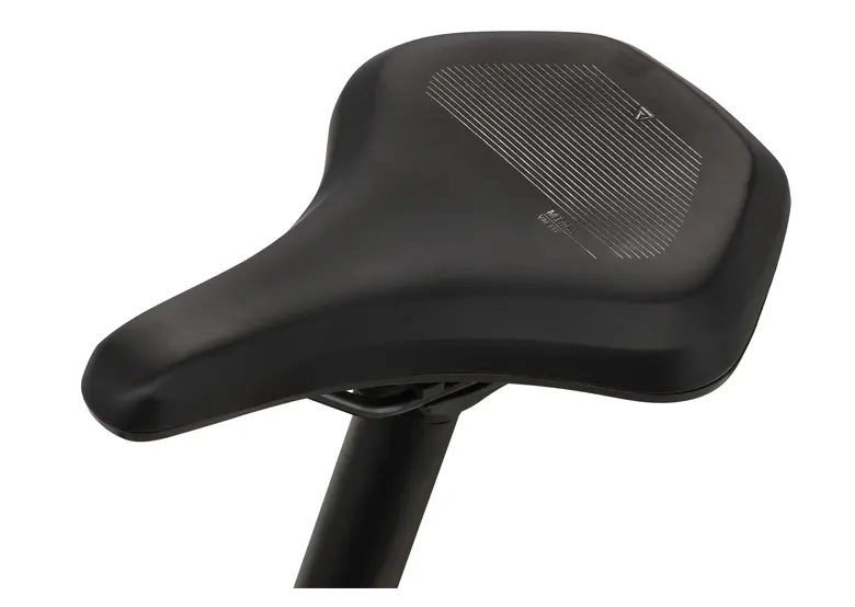 Aluminiowa rama o niskim przekroku gwarantuje wygodę wsiadania i zsiadania, a wewnętrzne prowadzenie przewodów poprawia estetykę oraz chroni linki przed zabrudzeniami. Komfort jazdy zwiększa amortyzowany widelec SR Suntour XCM32-ATB o skoku 80 mm, który skutecznie tłumi nierówności.